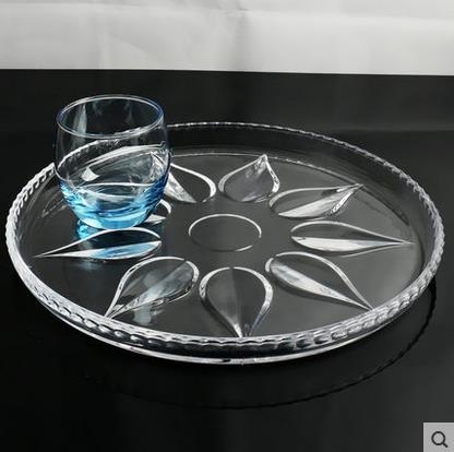 4月上新 水晶大号水果盘 透明平盘 拼盘水具茶盘 圆形托盘包邮